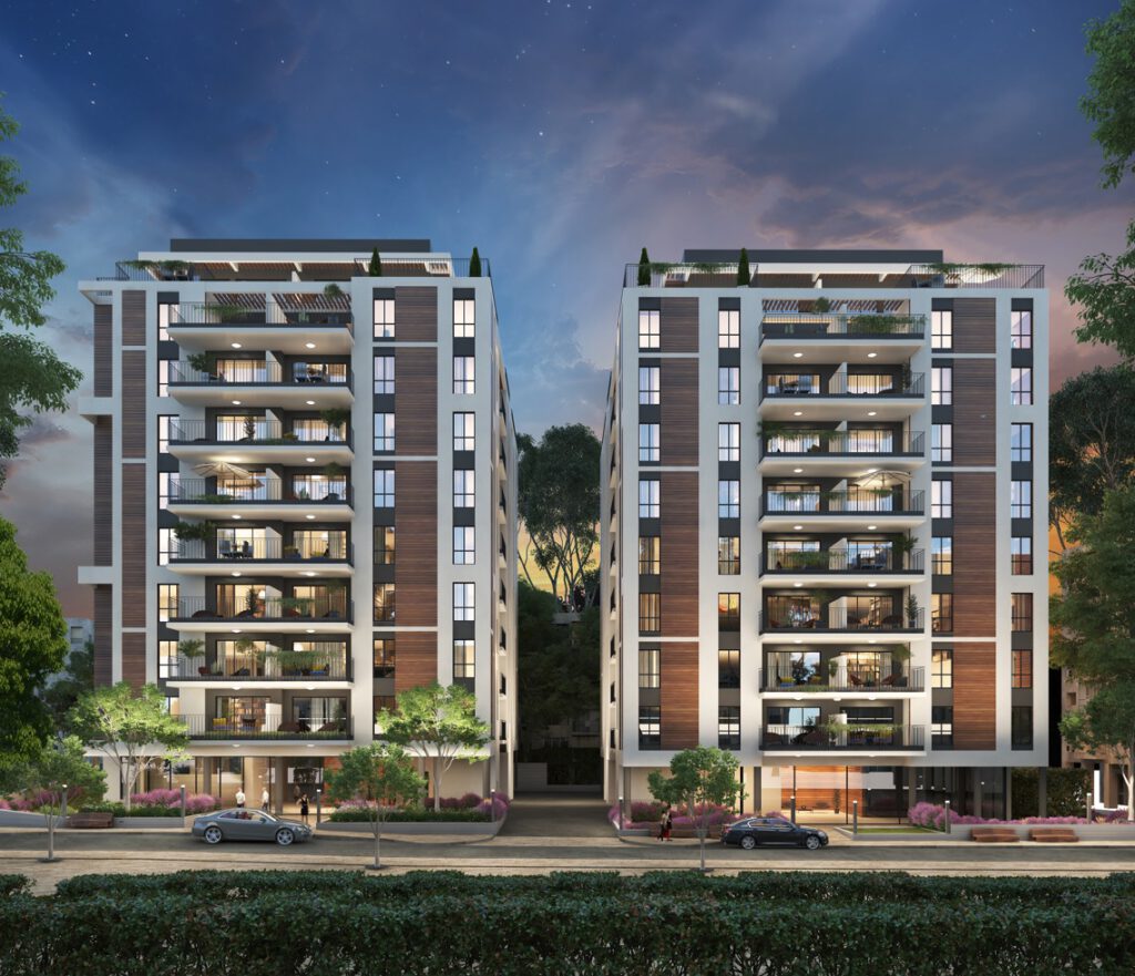 - חיפוי הבניינים בחומר יוקרתי על פי בחירת אדריכל הפרויקט