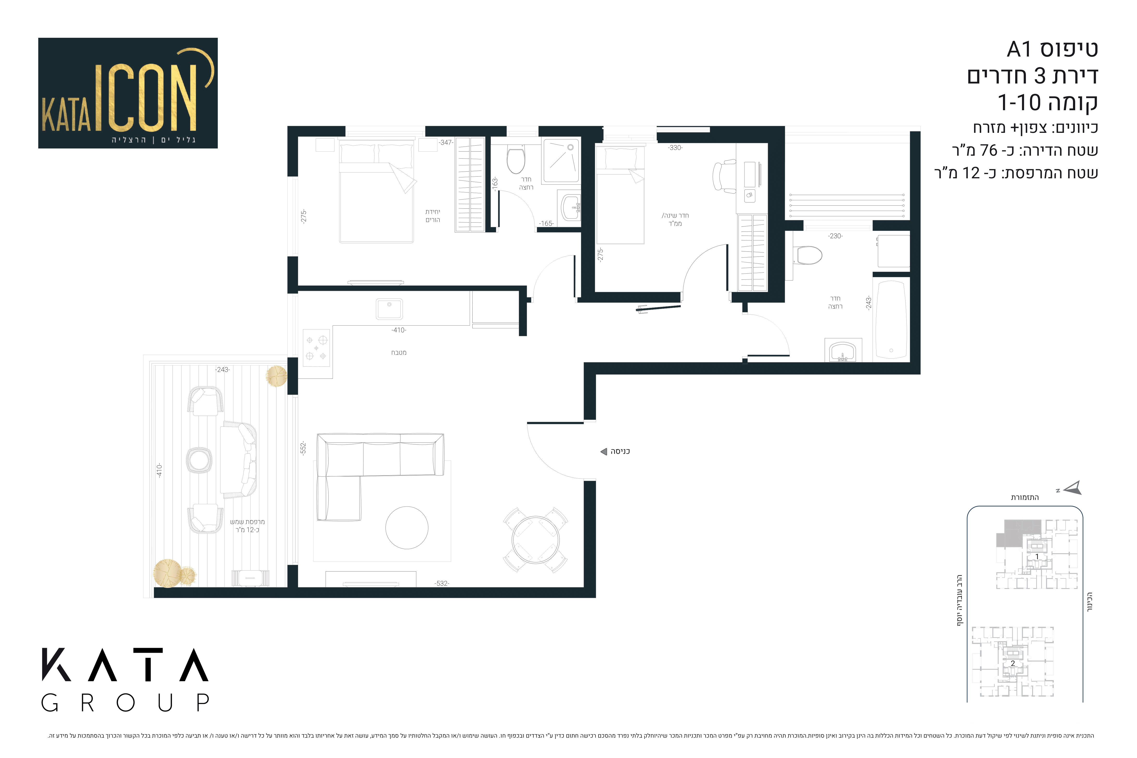 פרויקט KATA ICON כולל 2 בניינים והוא תוכנן כיצירה ארכיטקטונית המעניקה לדיירים חוויית מגורים ייחודית ויוקרתית. סטנדרט בנייה ומפרט גבוה הנגלה בכל פרט בתכנון הפרויקט. החל מעיצוב הדירות המודרני והמוקפד העושה שימוש באור הטבעי ומכניס את הנוף הפתוח לדירות